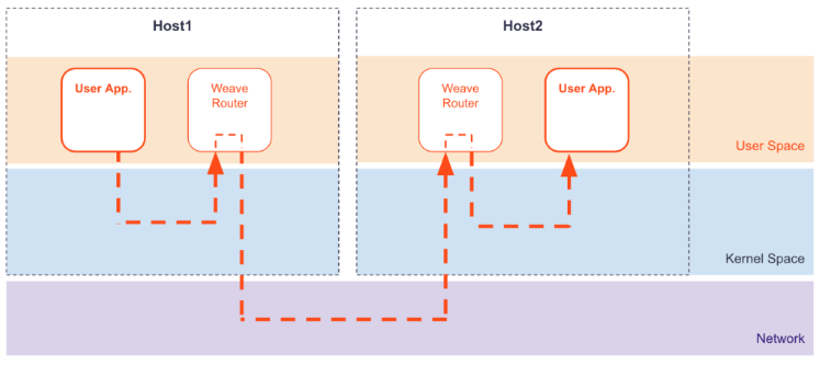 数据平面上,Weave通过UDP封装实现L2 Overlay,封装支持两种模式: